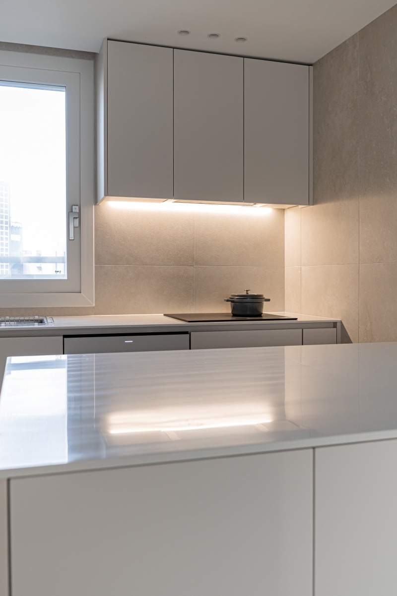 더 큰 스트레스는 바로 **'샌딩 자국'**이에요! 평소엔 잘 안 보이는데, 오후 햇살이 비치거나 조명을 켜면 시공할 때 문질렀던 그 동글동글한 연마 자국이 너무나 선명하게 보입니다. 한번 눈에 띄기 시작하니까 볼 때마다 속상해서 미치겠어요. 상판만큼은 돈 더 들여서라도 세라믹이나 엔지니어드 스톤으로 가시길 강력 추천합니다.
